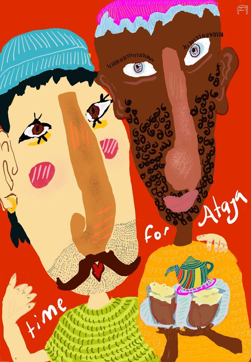 I make illustrations that feel like a warm hug — bold colours, wobbly lines, and faces full of feeling. My work lives somewhere between a children's book and a gallery wall: it's meant to be looked at every day and to make you smile every time.